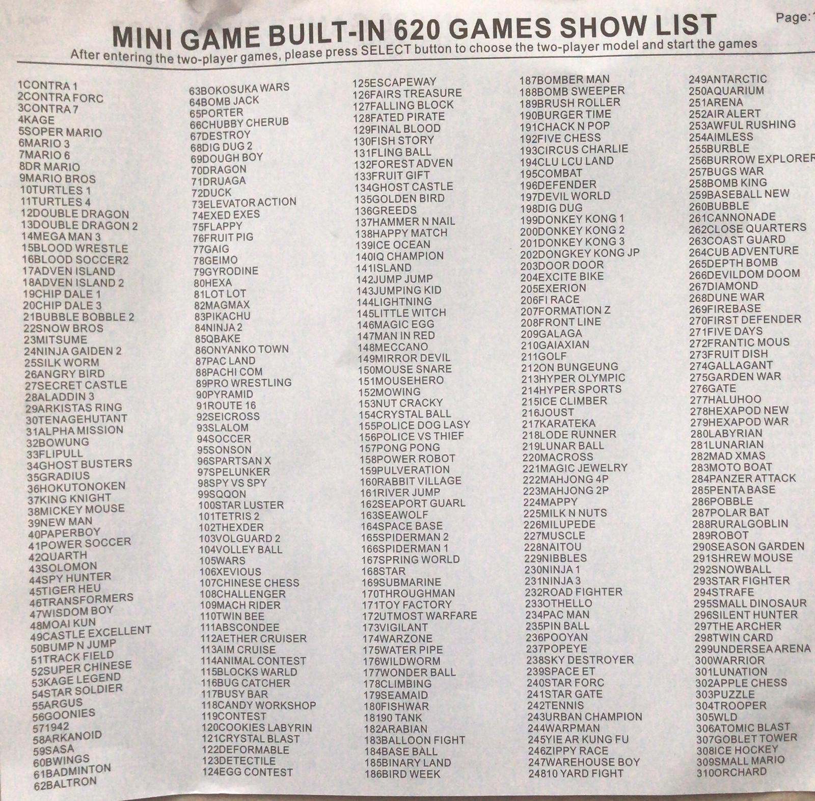 Świetna konsola do gier telewizyjnych typu Pegasus, zagrasz na niej w takie hity jak Mario, Contra, Tanki, Pac man - aż 620 gier w zestawie, na dole ogłoszenia zamieszczamy liste tytułów gier.