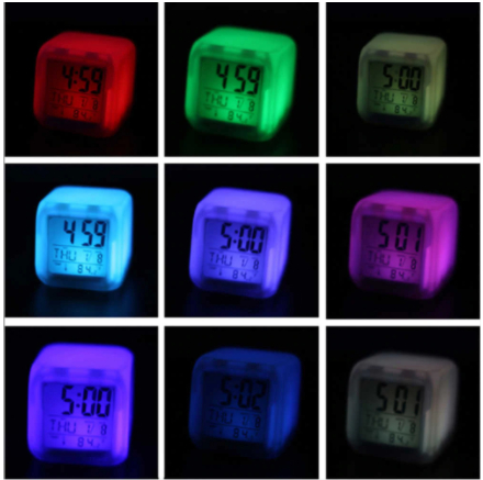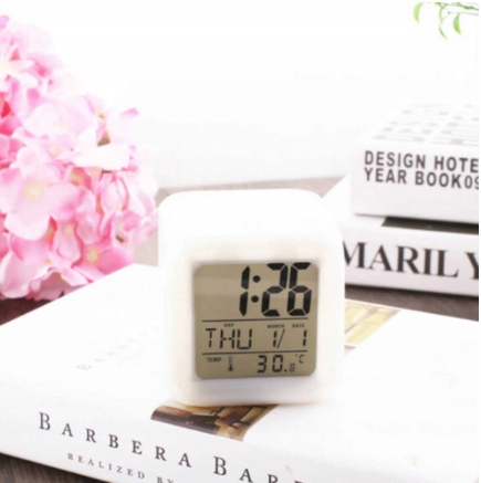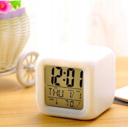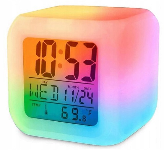 Fabrycznie nowy, zegarek kameleon - budzik z kalendarzem i termometrem. Zegarek płynnie zmienia kolory (7 kolorów).