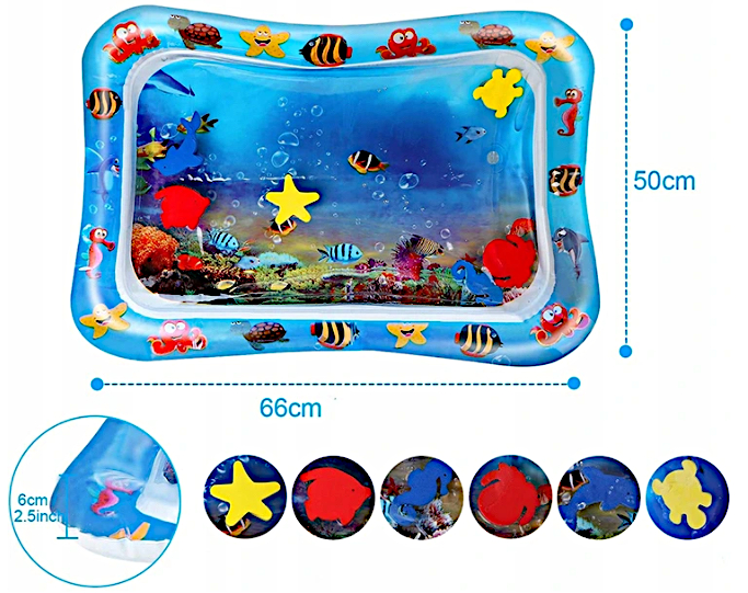 BARDZO ŁATWA W UŻYCIU - przygotowanie maty do zabawy zajmuje 3 minuty. Po prostu napełnij zewnętrzny pierścień powietrzem, a wewnętrzną komorę maty napełnij wodą z kranu, połóż ją na podłodze i zacznij wspaniałą zabawę!