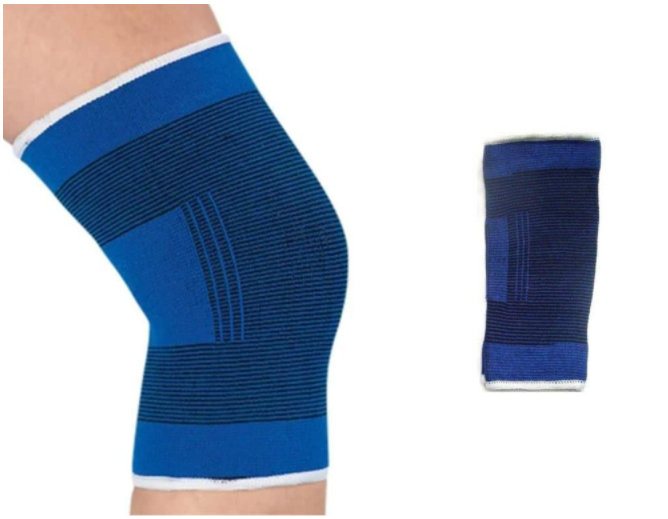 Zestaw składa się z 2 sztuk elastycznych ściągaczy na kolano. Opaska jest w kolorze granatowym. Rozmiar uniwersalny.