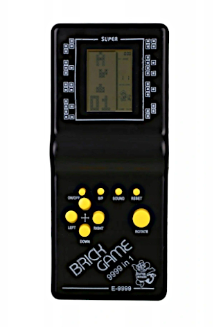 Gra ręczna Brick Game 9999. Kultowa gra elektroniczna z lat 90-tych. Idealna rozrywka dla dzieci i dorosłych podczas podróży, czekania na autobus, przerw w szkole, czy po prostu jako świetna zabawa w czasie wolnym ! Konsolę łatwo się przechowuje w kieszeni czy plecaku.