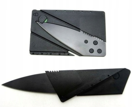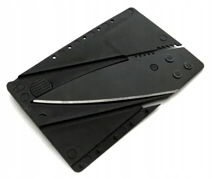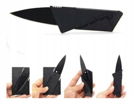 Składany noż-karta kredytowa-survivalowa nadający się do noszenia w portfelu, dzięki czemu zawsze będziesz miał go przy sobie w razie awaryjnej sytuacji. Szczególnie przydatny na wyjazdach !!