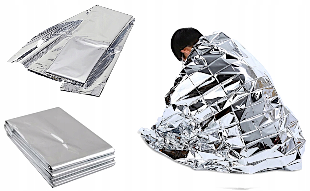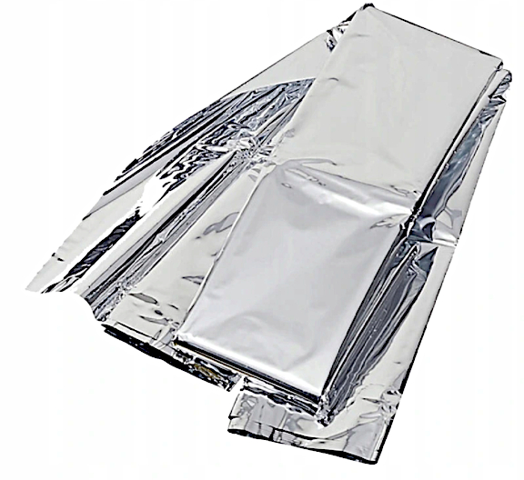 Ratunkowy koc termiczny wykonany z wysokiej jakości srebrnej folii używanej w ratownictwie, turystyce, wspinaczce oraz sytuacjach awaryjnych lub warunkach ekstremalnych.