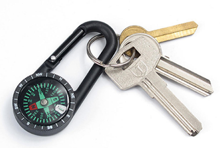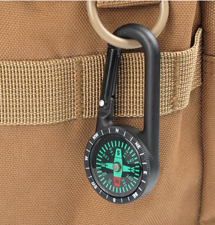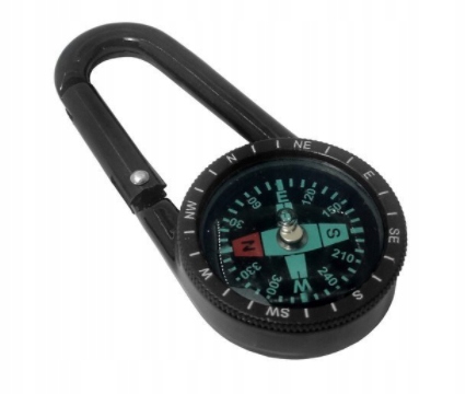 Kompas dodatkowo wyposażono w praktyczny karabińczyk, który umożliwia przypięcie busoli do plecaka lub odzieży.
