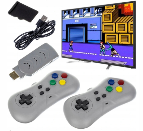 ✔️ BARDZO SZYBKIE PODŁĄCZENIE DO TV – w zestawie znajduje się wszystko czego potrzebujesz do grania. Po wyjęciu zestawu z opakowania wystarczy podłączyć konsolę do telewizora lub monitora z wejściem HDMI. Podpiąć przewód zasilający do konsolki i portu USB (zaświeci się czerwona dioda w konsoli). Włożyć baterie do padów (brak w zestawie) i GOTOWE!
