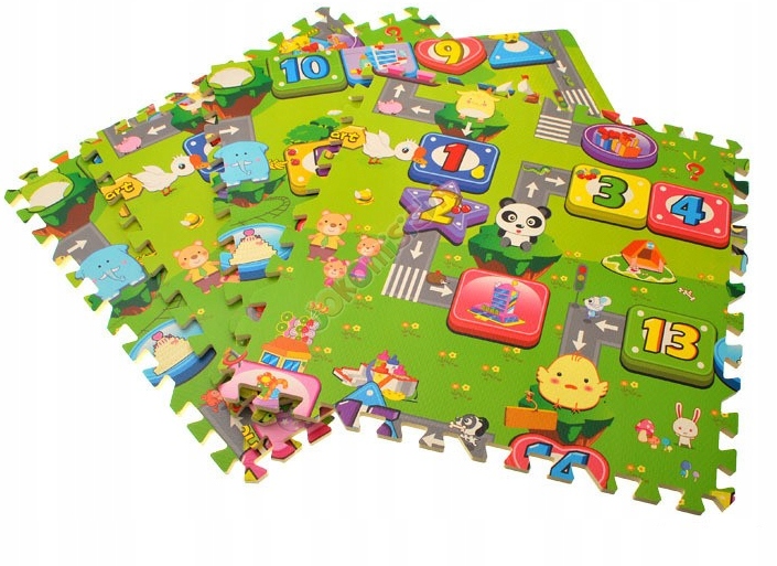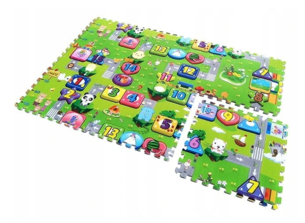 Puzzle są duże, mają wymiary 58,5 x 58,5 x 1 cm. Dziecko szybko rozłoży je samodzielnie. Piankowa miękka droga jest bezpieczna dla dziecka, można jej używać w domu, na balkonie lub na podwórku. Puzzle mogą służyć również jako mały miękki dywanik. Mata w całości ma wymiary 120 cm x 120 cm.