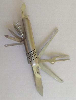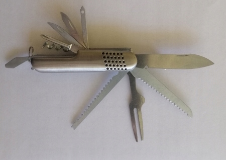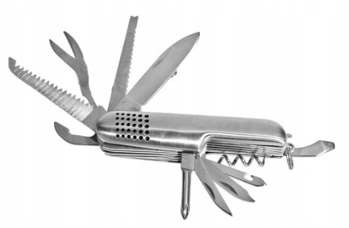 Niewielki kompaktowy scyzoryk który ma aż 11 końcówek. Idealny do podróży, na piknik czy do lasu.