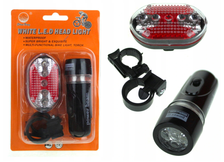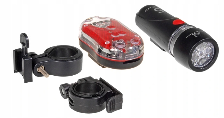Z lampkami otrzymasz uchwyty umożliwiające montaż na przodzie i tyle roweru. Lampy wyposażone zostały w mocne diody LED, które sprawią, że będziesz dobrze widoczny dla innych użytkowników drogi. Obudowa lamp jest odporna na wstrząsy i złe warunki pogodowe, więc masz pewność, że wjeżdżając na nierówny teren lub gdy dopadnie Cię deszcz, lampki nie przestaną działać.