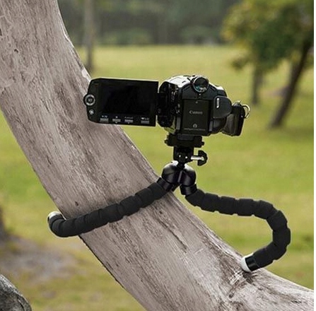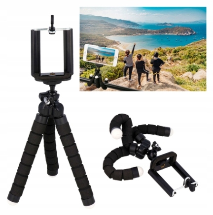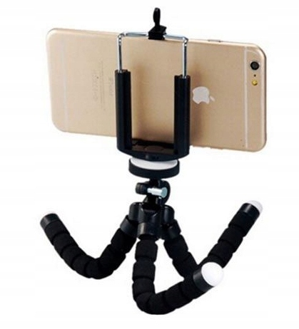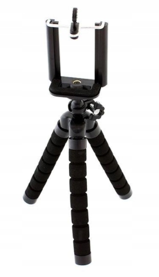 Uniwersalny bardzo elastyczny statyw z uchwytem na smartfon lub aparat fotograficzny. Dzięki swoim giętkim, a zarazem sztywnym nogom można go stabilnie zamocować praktycznie w każdym miejscu. Nogi są pokryte gumową warstwą, dlatego świetnie trzyma się nawet śliskich powierzchni.