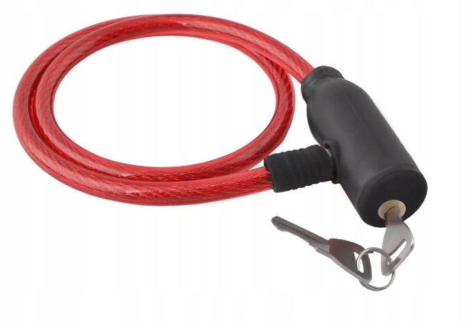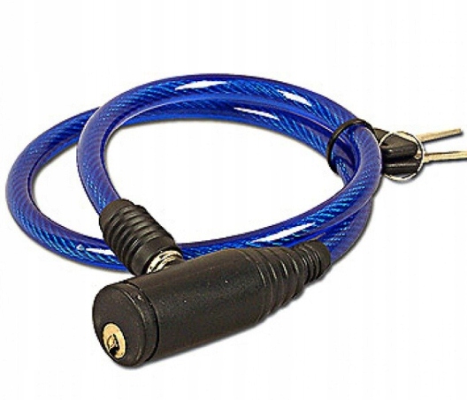 Zapięcie rowerowe, chroniące przed kradzieżą. Mocno spleciona linka w twardej silikonowej osłonie, wykonana jest ze stali. Zamek jest wzmacniany dodatkowo wytrzymałym plastikiem. Sprawdzi się przy zabezpieczaniu wszelkiego rodzaju bram, furtek, drzwi, piwnic, zapięć do roweru itp. W zestawie 2 kluczyki.
