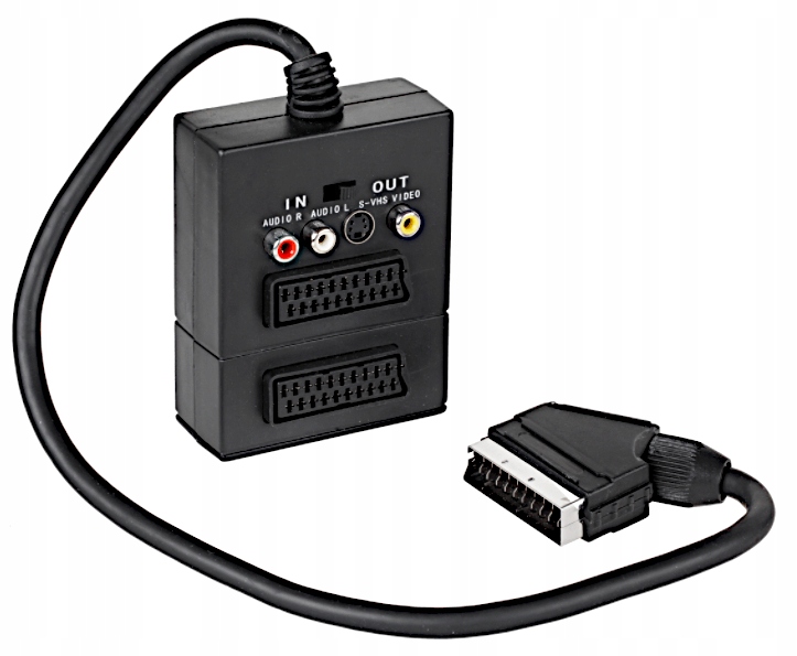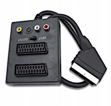 Adapter umożliwia rozdzielenie sygnału EURO na dwa urządzenia oraz posiada przejście na Audio i video RCA (Cinch) i SVHS.